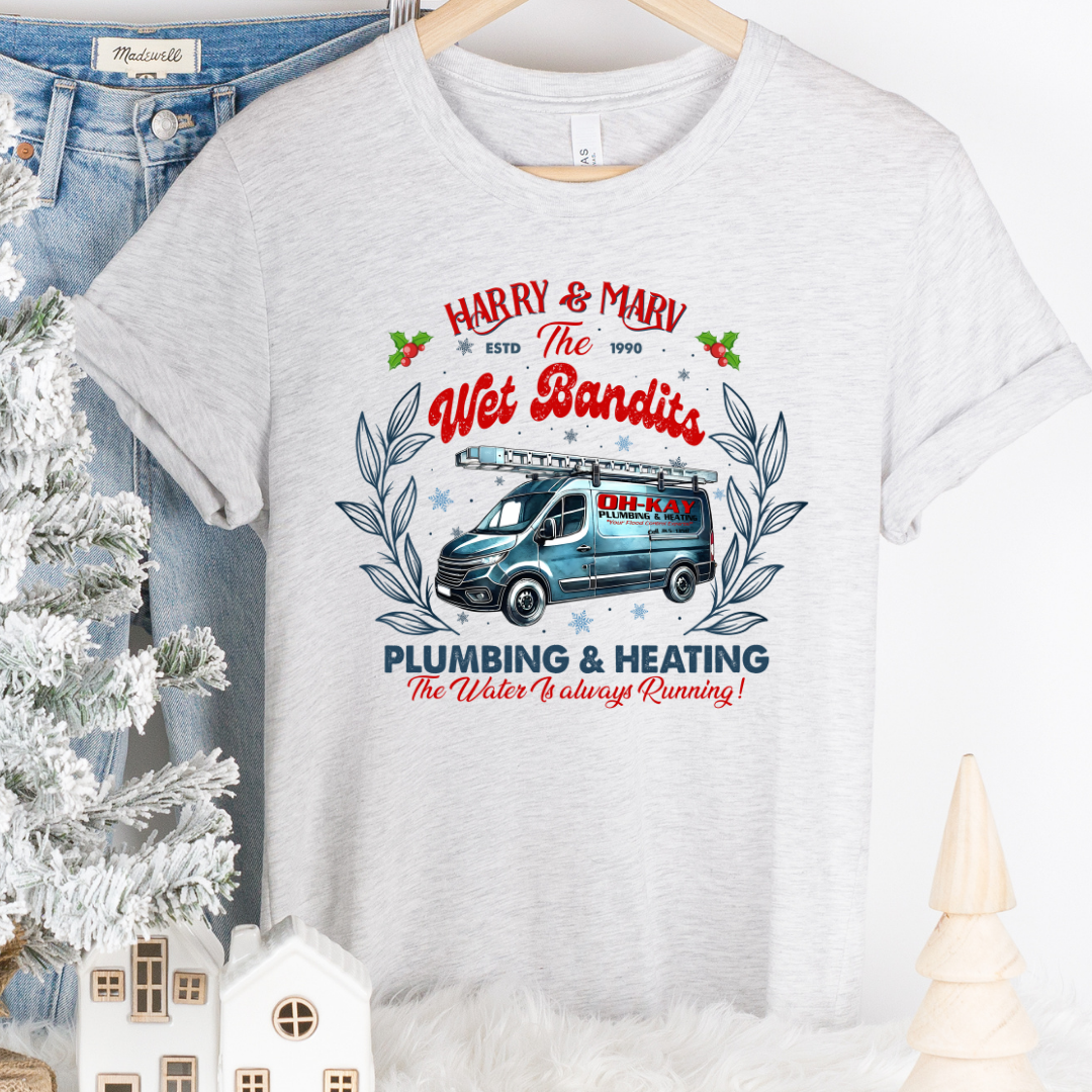 Show your holiday spirit with this humorous shirt referencing the classic Christmas movie, Home Alone. Available in multiple unisex shirt styles in Ash. Ash is a very light speckled grey. See closeup of the color and sizing in images.